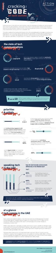 ومع استمرار التطور في مجالات الذكاء الاصطناعي والتكنولوجيا الرقمية في إحداث تغييرات جذرية في قطاع الاتصالات التسويقية، يسلط تقرير أكشن جلوبال كوميونيكيشنز الضوء على أهمية السرد القصصي الذي يخاطب العواطف. وقالت كاميليا دابو، المدير العام للوكالة في دولة الإمارات: “يوفر الاستبيان مجموعة من الرؤى الرئيسية يؤكد فيها على العوامل الجوهرية لتحقيق النجاح في قطاع التواصل الحديث، من خلال تسليط الضوء على حاجة العلامات التجارية إلى التفاعل مع جمهورها بروح إنسانية وأسلوب أكثر عمقاً في ظل المشهد الرقمي المزدحم الذي نعيشه اليوم”.