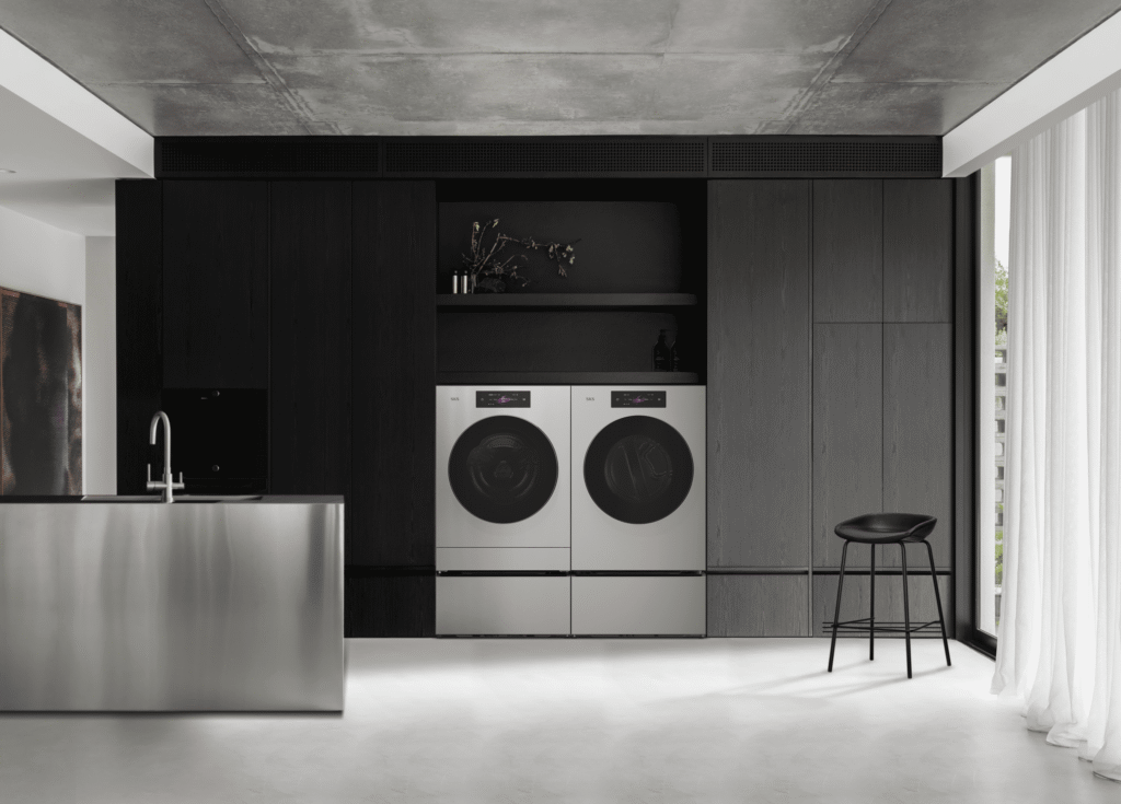 عُرِضَ مجفف SKS الجديد بجانب غسالة ومجفف WashCombo، ويتميز بسعة كبيرة تبلغ 9 أقدام مكعبة لغسل كميات أكبر من الملابس. وتعتمد تقنية التجفيف بالاستشعار الذكي AI Sensor Dry على الكشف الذكي عن ملمس القماش ومستوى رطوبته لضبط وقت التجفيف ودرجة الحرارة تلقائياً، مما يضمن أداءً فعالاً وموفراً للطاقة. وتوفر مجموعة غسالات ومجففات SKSالخيارات المرنة، والتي تشمل نظام 3 في 1 (غسالة ومجفف WashComboمع وحدة MiniWash بسعة قدم مكعبة واحدة) أو نظام ثنائي متكامل (غسالة ومجفف WashCombo)، مما يمنح العملاء مرونة في إنشاء إعدادات مخصصة تناسب أنماط حياتهم ومساحاتهم المختلفة.