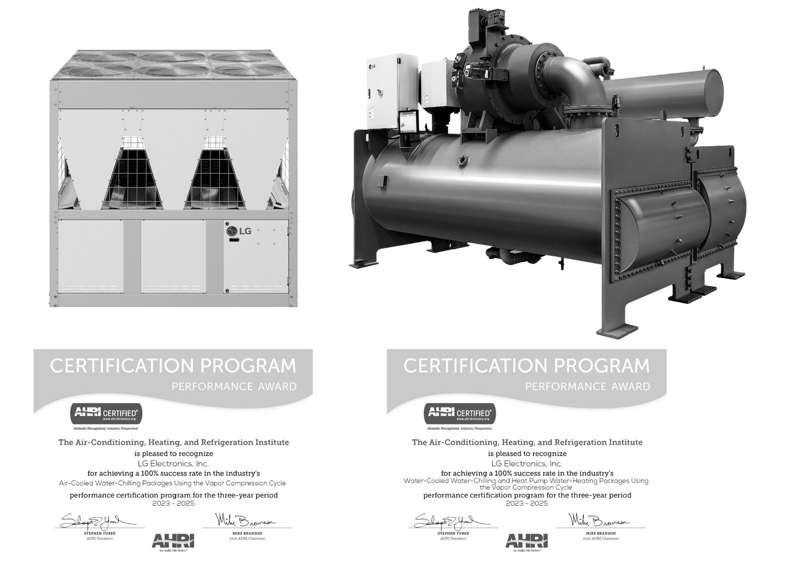 وواصلت مبردات “إل جي” التي تعتمد على التبريد بالهواء والماء سجلها الحافل بالتقدير، مسجلةً تسع سنوات متتالية من شهادة جائزة الأداء المتميز من معهد AHRI. وتوفر هذه المبردات كفاءة1 عالية بفضل تقنية الضواغط الخاصة بشركة “إل جي”.
