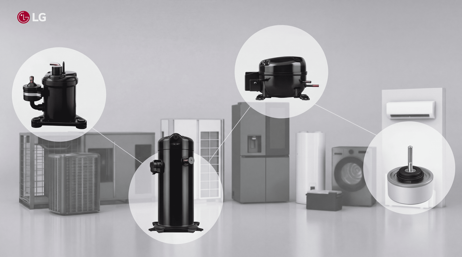 ورسّخت “إل جي” بفضل خبرتها التي تمتد لما يقارب 70 عاماً في تقنيات الضواغط والمحركات، مكانتها كمورّد عالمي رائد للمكونات الأساسية للأجهزة المنزلية، التي تشمل أنظمة التدفئة والتهوية والتكييف والثلاجات والغسالات والمكانس الكهربائية. وكشفت “إل جي” في معرض هذا العام عن تقنيتين حصريتين تُستخدمان في أحدث مكوناتها: سلسلة إل جي BHA – DualJetللضواغط الترددية وLG CurvedSpoke لمحركات التيار المستمر.