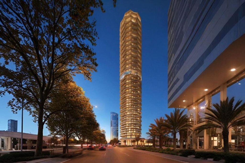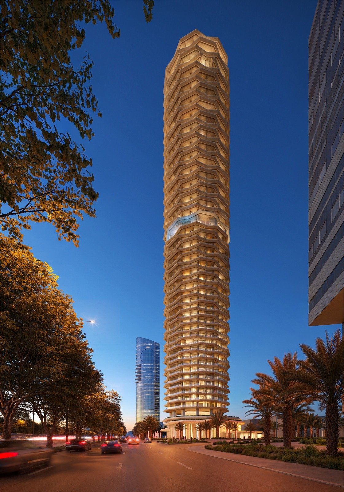 يستوحي البرج تصميمه الفريد من جذع النخلة رمز العطاء والأصالة، ليجسّد روح الطراز السلماني الذي يوازن ببراعة بين الجمال والوظيفة والهوية المحلية. ويضم البرج وحدات سكنية وخدمية ومرافق ترفيهية متكاملة، معتمداً على حلول هندسية ذكية ومستدامة تراعي الخصوصية والمناخ المحلي للمنطقة.