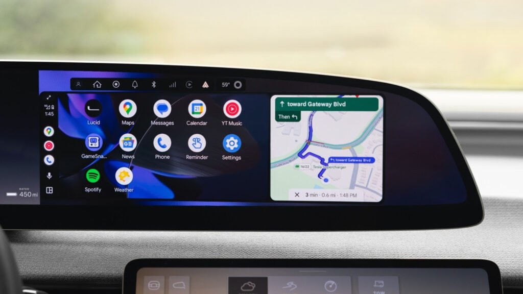 بات بإمكان مالكي سياراتLucid Gravity الحاصلة على عدة جوائز، الوصول بسهولة إلى تطبيقات الخرائط، والوسائط، والرسائل المفضلة، على هواتفهم العاملة بنظام Android™، وذلك عبر الجزء العلوي الأيمن من شاشة قمرة القيادة Clearview Cockpit. يتيح هذا النظام إمكانية الاتصال لاسلكياً أو عبر كابل USB، حسب نوع الهاتف وإصدار نظام التشغيل .