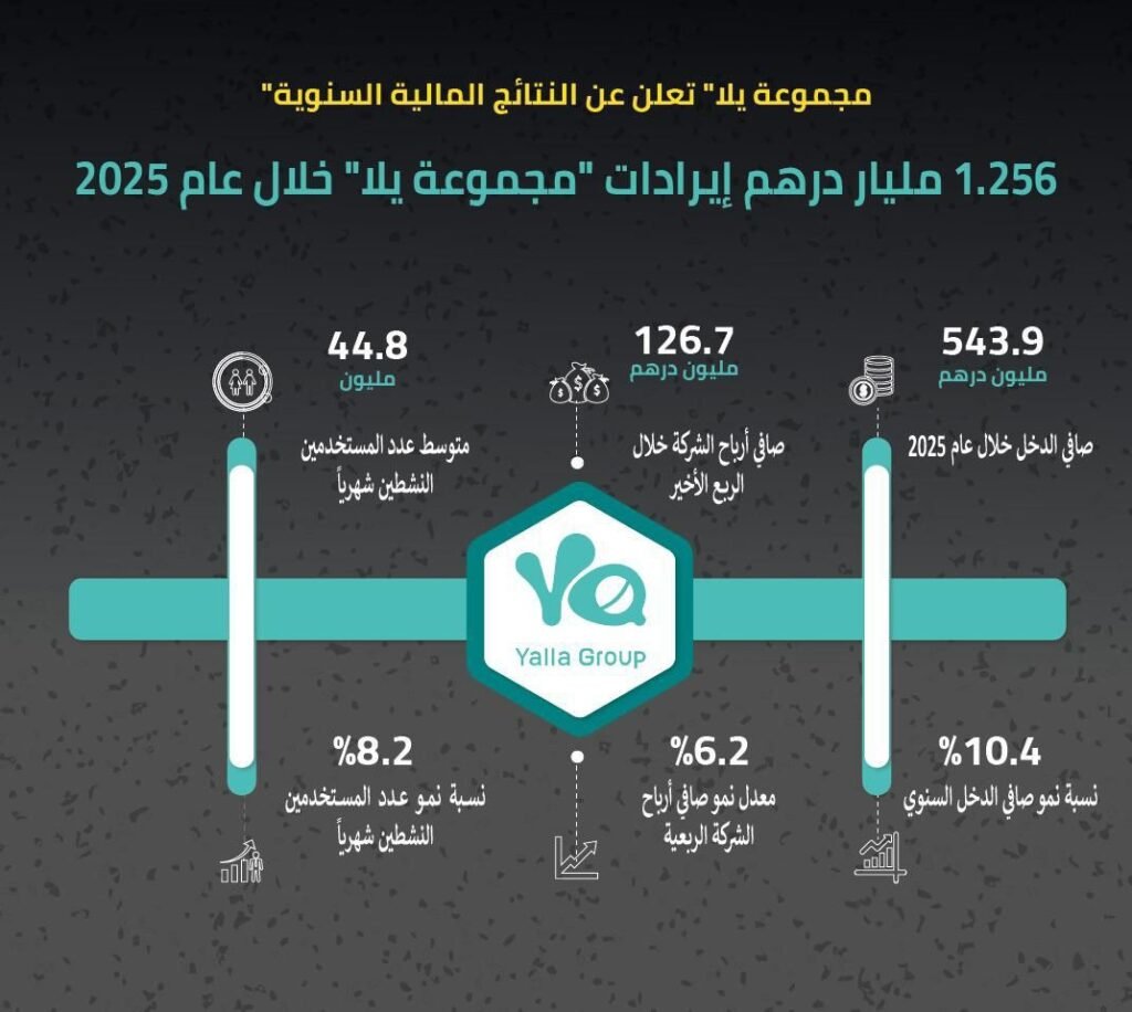 مجموعة يلا” تعلن عن النتائج المالية السنوية1.256 مليار درهم إيرادات “مجموعة يلا” عام 2025